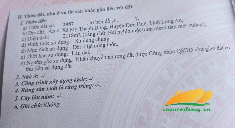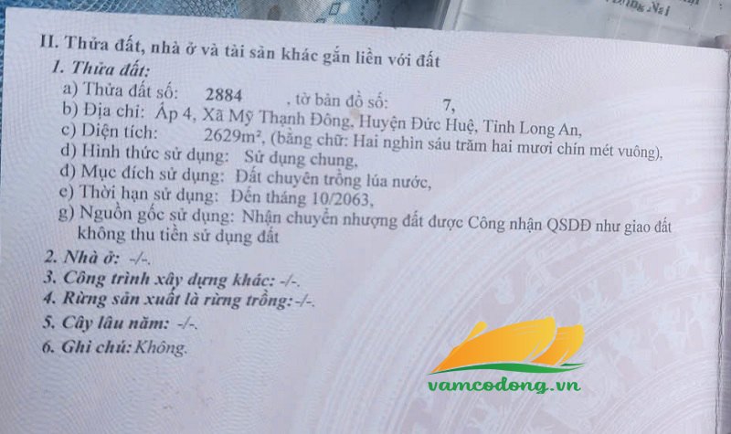 Mô tả: Đất lúa, ngang 52m dài 95m, hậu 45m, tổng diện tích công nhận 4747m2.