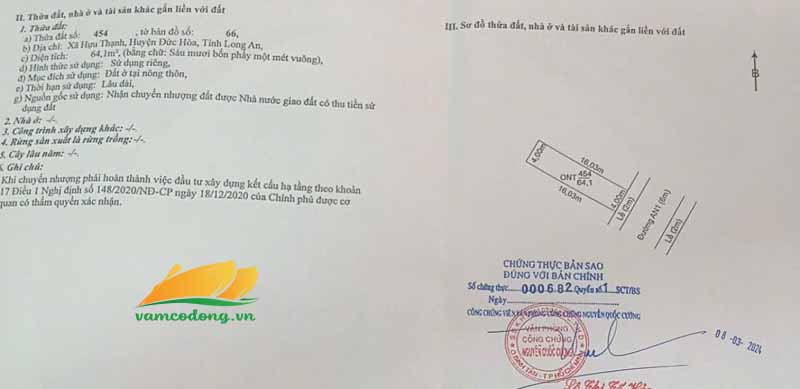 Mô tả: Nền ngang 4m dài 16m, tổng diện tích công nhận 64m2. Đường số AN1 rộng 6m.