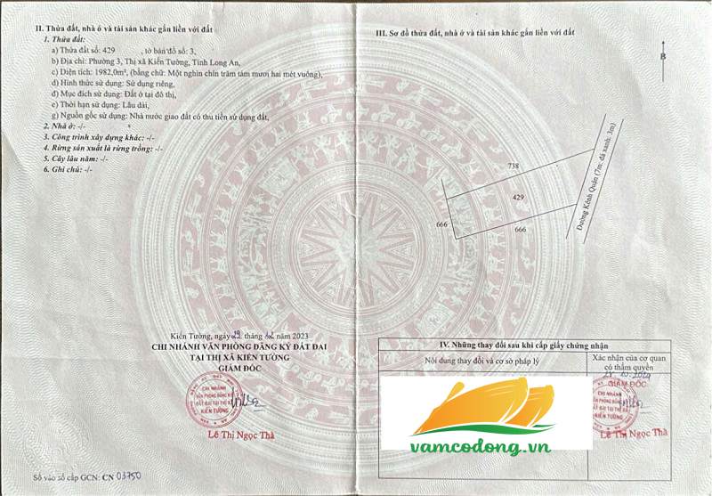 Mô tả: Đất thổ cư, ngang 26m, dài 70m, tổng diện tích công nhận 1982m2.