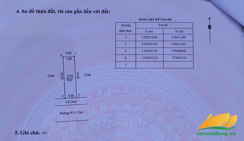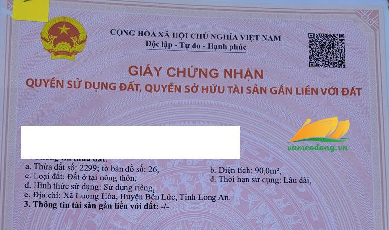 Mô tả: Đất thổ cư, ngang 5m, dài 18m, tổng diện tích công nhận 90m2.
