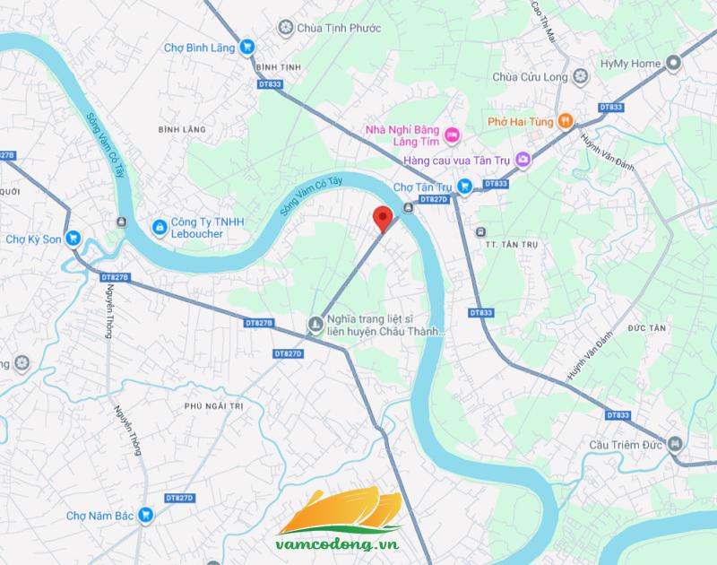 - Cách sông Vàm Cỏ Tây 250m (Bến phà Tân Trụ).