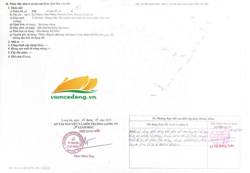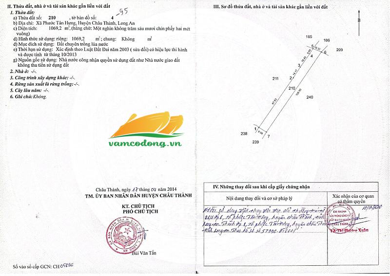 Mô tả: Đất lúa, ngang 85m, dài 27m, tổng diện tích công nhận 2500m2.