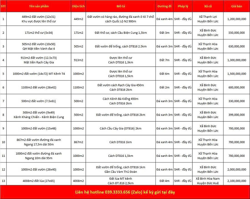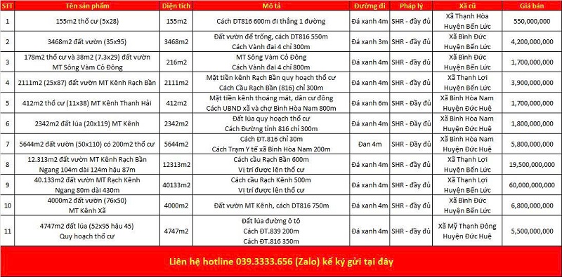 Thông tin chi tiết bất động sản đang rao bán theo tuyến đường tỉnh 816 tham khảo phần dưới bài viết