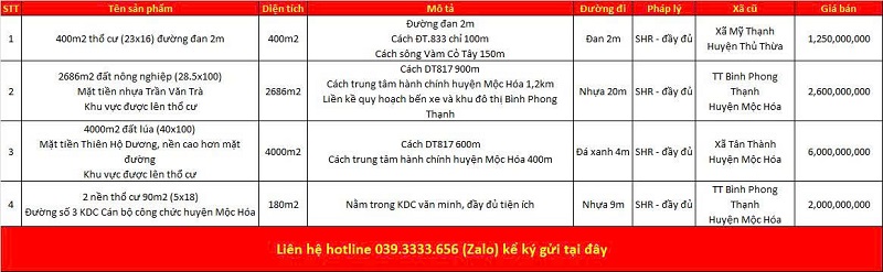Danh sách bất động sản đang rao bán trên tuyến đường tỉnh 817