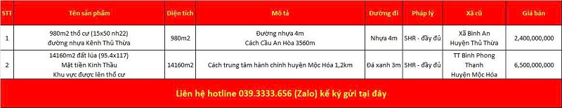 - Cầu Bà Giải – Ranh huyện Thạnh Hóa (phía cặp kênh): 1.270.000 VND/m2