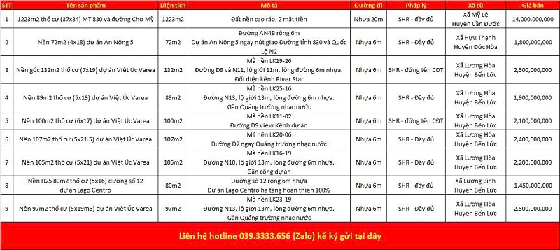 Danh sách bất động sản đang rao bán trên tuyến đường tỉnh 830