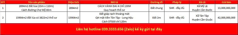 - Cách ngã tư giao lộ ĐT 826 50m – Ranh xã Long Hòa và xã Thuận Thành, Mỹ Lệ (Cần Giuộc): 2.060.000 VND/m2