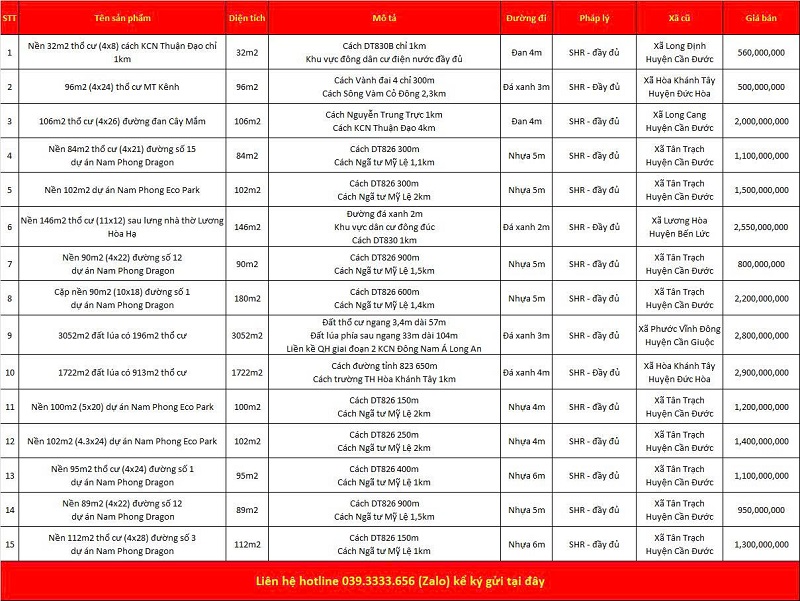 (4) Cần Đước – Tân Trạch: 84m2 thổ cư đường số 15 dự án Nam Phong Dragon Giá 1,1 tỷ đồng