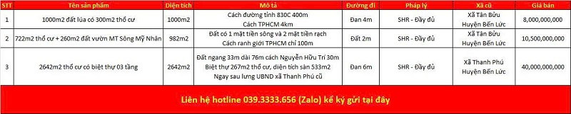 Danh sách bất động sản đang rao bán trên tuyến đường tỉnh 830C
