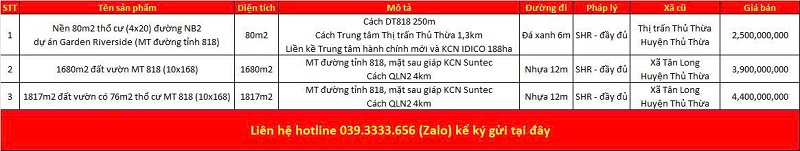 Danh sách bất động sản đang rao bán trên tuyến đường tỉnh 818