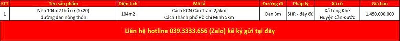 (1) Rạch Kiến – Tây Ninh (Long An – Cần Đước): 104m2 thổ cư cách KCN Cầu Tràm 2,5km Giá 1,45 tỷ đồng
