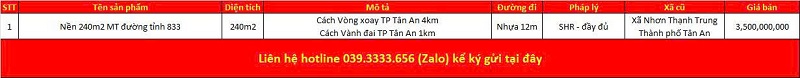 Danh sách bất động sản đang rao bán trên tuyến đường tỉnh 833