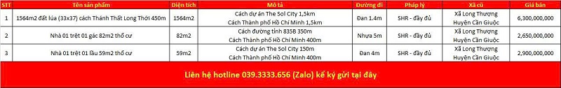 Danh sách bất động sản đang rao bán trên tuyến đường tỉnh 835B